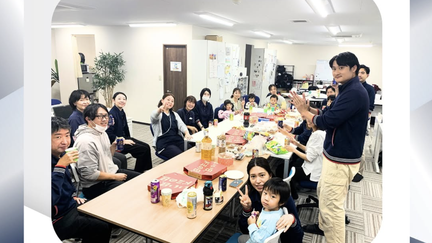 事業所にスタッフとそのお子さんたちが集まり、仕事終わりにプチパーティーを開催しました。